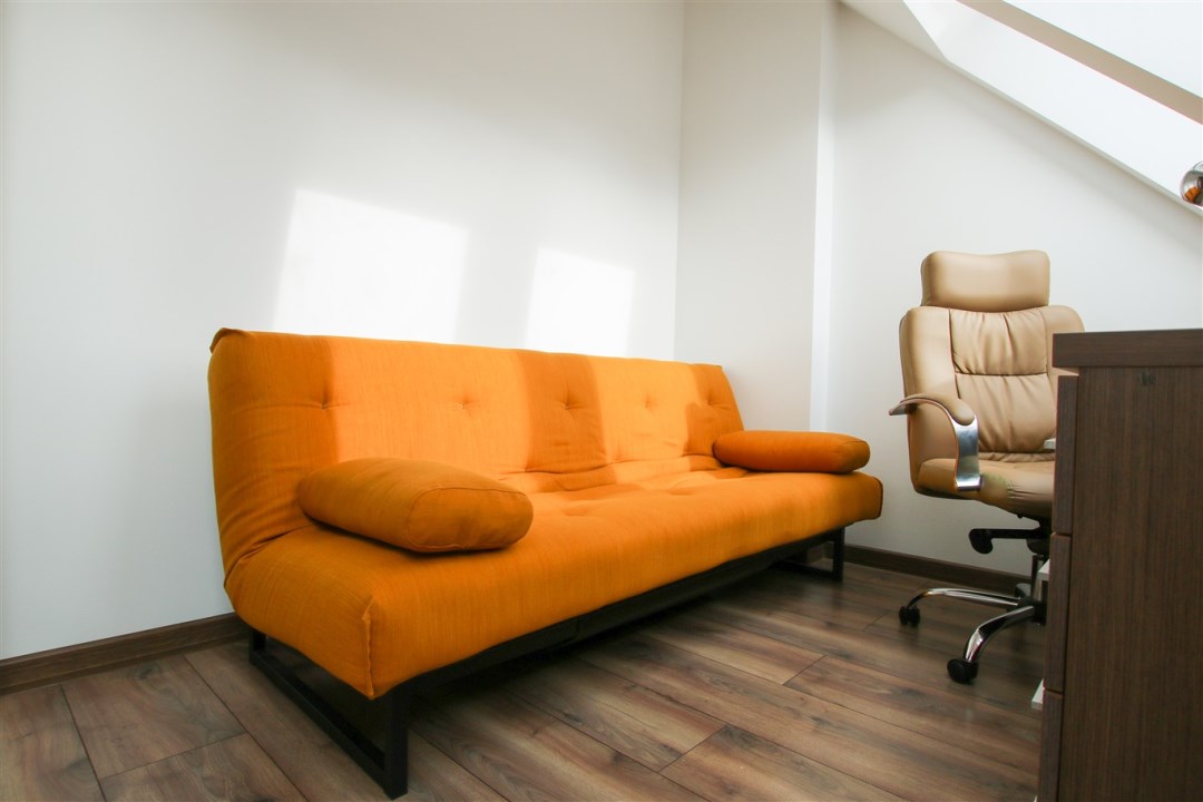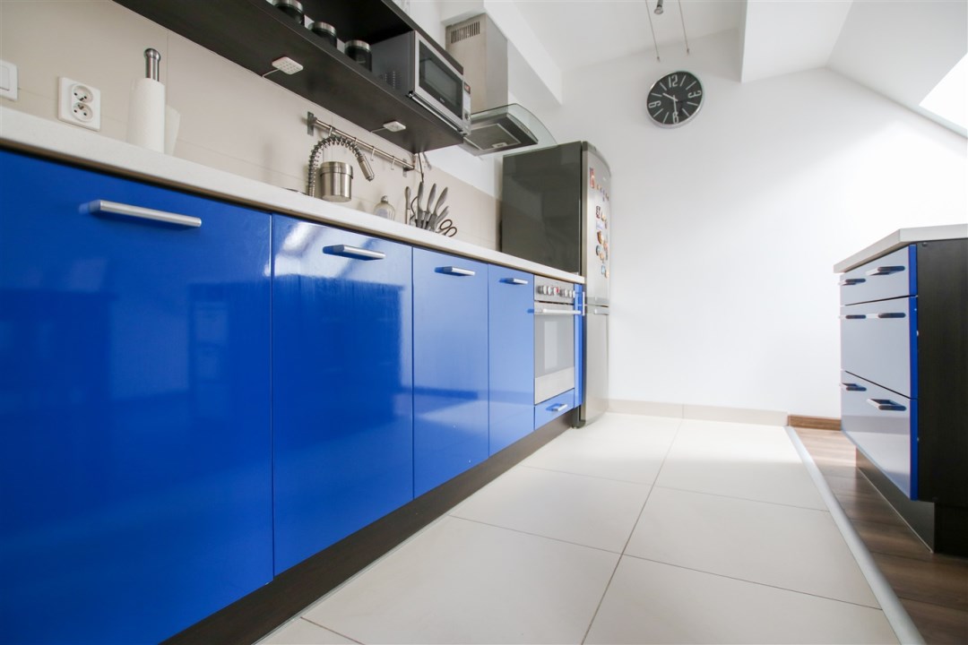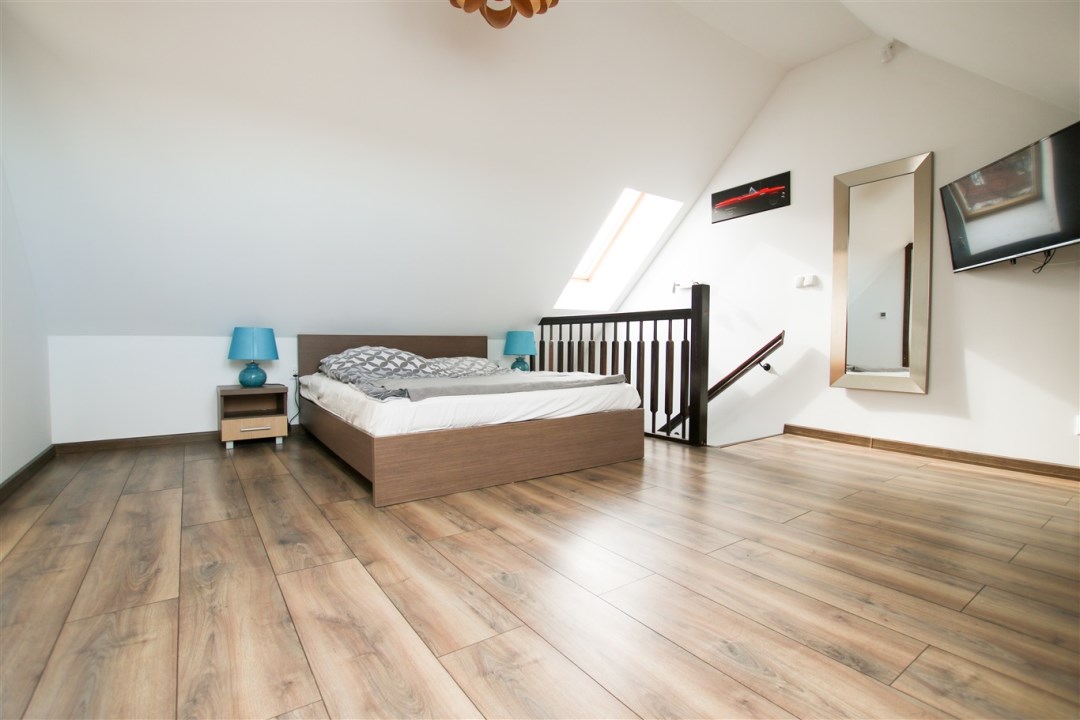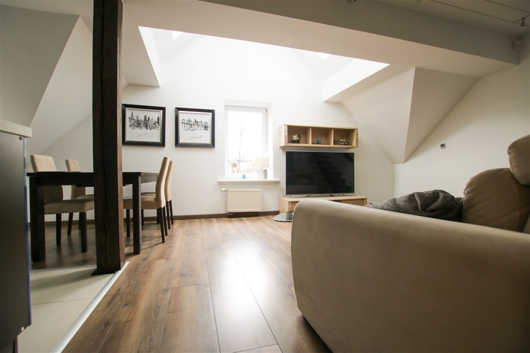 Mieszkanie to powierzchnia użytkowa 59 m2. Na parterze znajduje się przestronny, salon z dużym oknem z widokiem na słupski Ratusz; w pełni wyposażony aneks kuchenny z częścią jadalnianą oraz łazienka z kabiną prysznicową. Na piętrze mieszkania mieści się: sypialnia z dużym podwójnym łóżkiem, a także wiele funkcjonalnych szaf z miejscem do przechowywania rzeczy oraz pokój pełniący funkcję gabinetu.