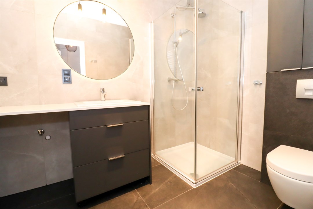 - łazienka z kabiną prysznicową i WC