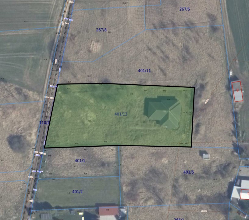 - energia elektryczna doprowadzona jest ze skrzynki posadowionej na działce sąsiedniej i doprowadzony jest kabel w kierunku budynku, brak doprowadzenia energii do budynku,