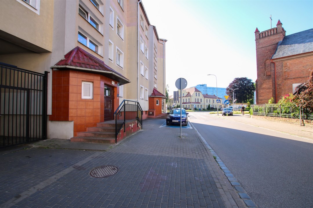 Do mieszkania przynależy piwnica, co zapewnia dodatkowe miejsce do przechowywania. Przed budynkiem znajdują się ogólnodostępne miejsca parkingowe. Budynek jest zadbany, a okolica spokojna i dobrze skomunikowana – w pobliżu znajdują się sklepy, przystanki autobusowe, punkty usługowe oraz tereny zielone.