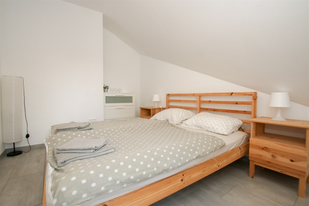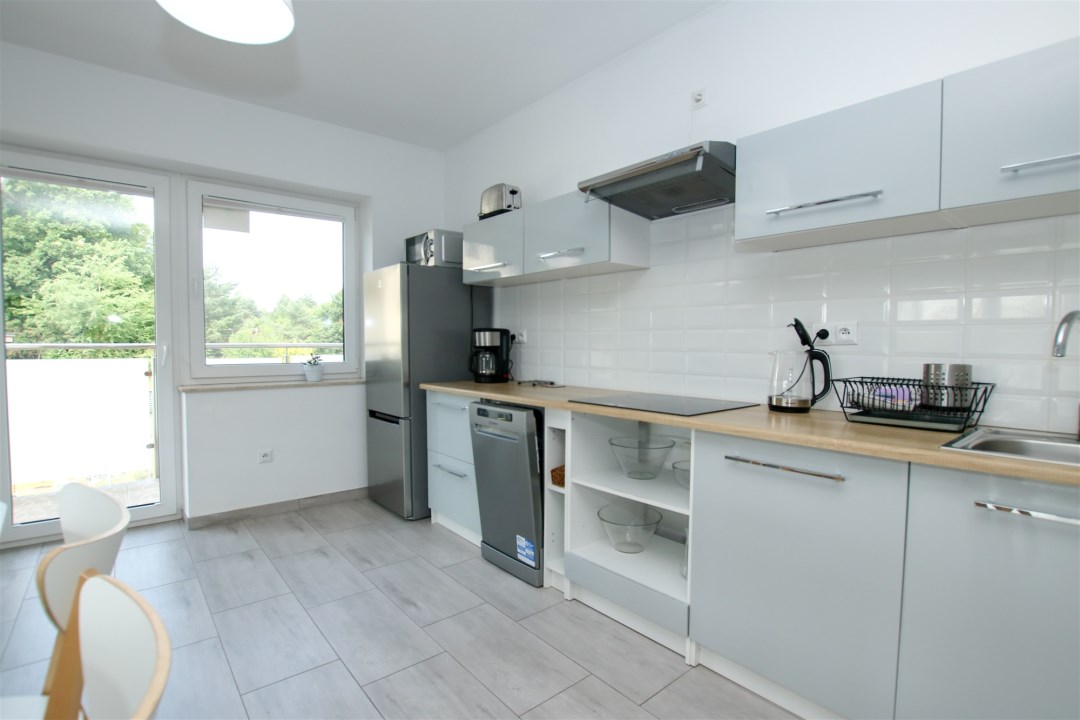 Nowoczesne wnętrze o funkcjonalnym układzie: przestronny salon z aneksem kuchennym z miejscem na przestrzeń wypoczynkową, łazienka oraz wygodny przedpokój. Wysoki standard wykończenia - gresy, nowoczesna armatura, drewniane akcenty i naturalne kolory tworzą klimat komfortu i relaksu. Na poziomie drugim znajduje się przestrzeń sypialniana z łóżkami, toaletką oraz osobną sypialnią z podwójnym łóżkiem. Dodatkowym atutem jest druga łazienka, która umili pobyt całej rodzinie i nikt nie będzie czekał w kolejce do toalety. W apartamencie jest ogrzewanie podłogowe. W pełni umeblowany i wyposażony: pralka, lodówka, płyta indukcyjna, zmywarka, telewizor, czajnik, naczynia - wszystko, czego potrzebujesz, by od razu zacząć wynajmować lub wypoczywać.