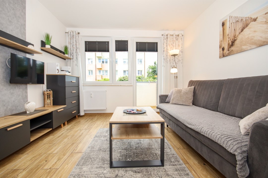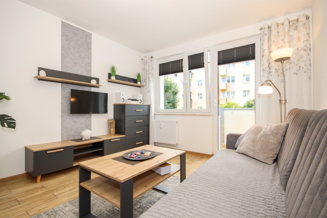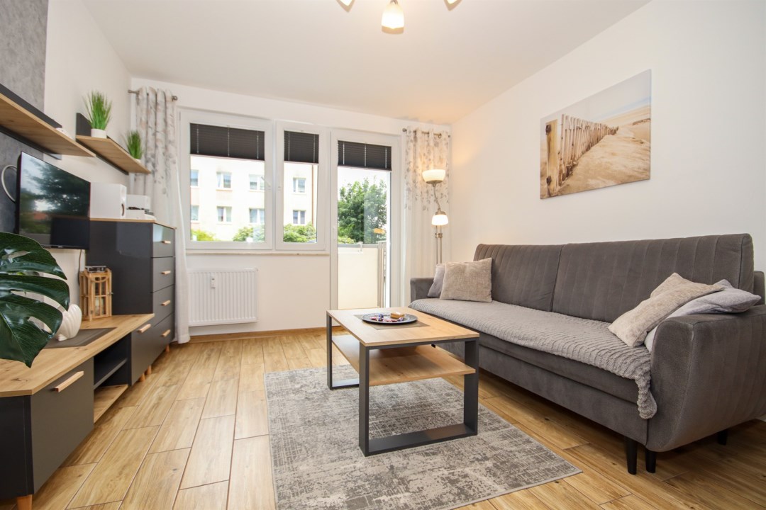 Na wynajem: komfortowe 2-pokojowe mieszkanie 35 m² z balkonem i piwnicą – 1. piętro – Ustka, ul. Grunwaldzka, 15 minut od plaży