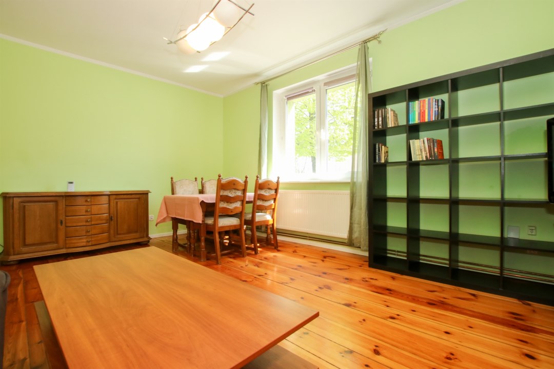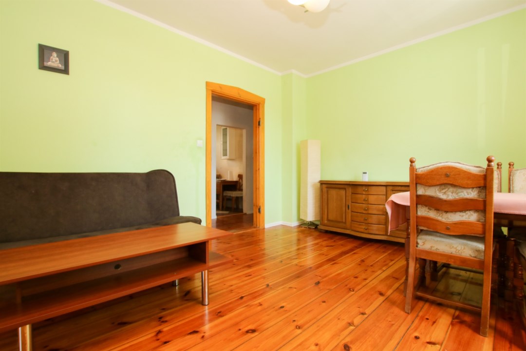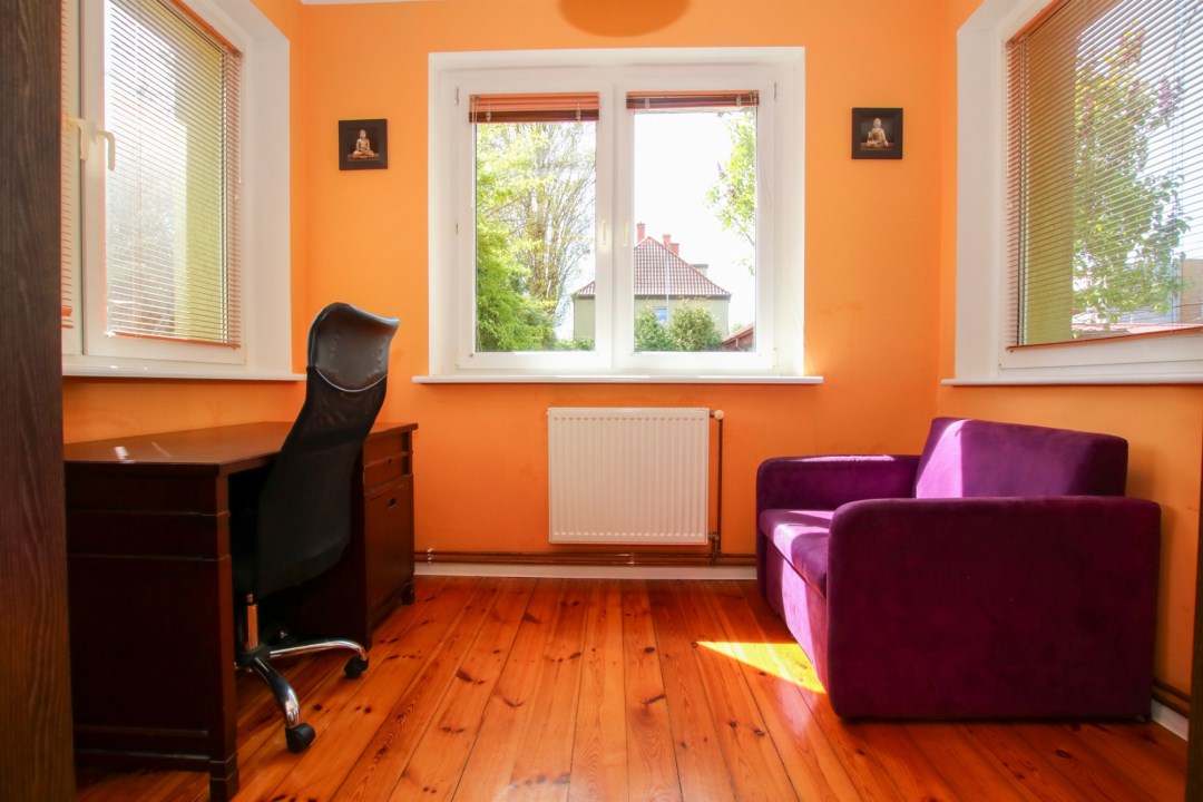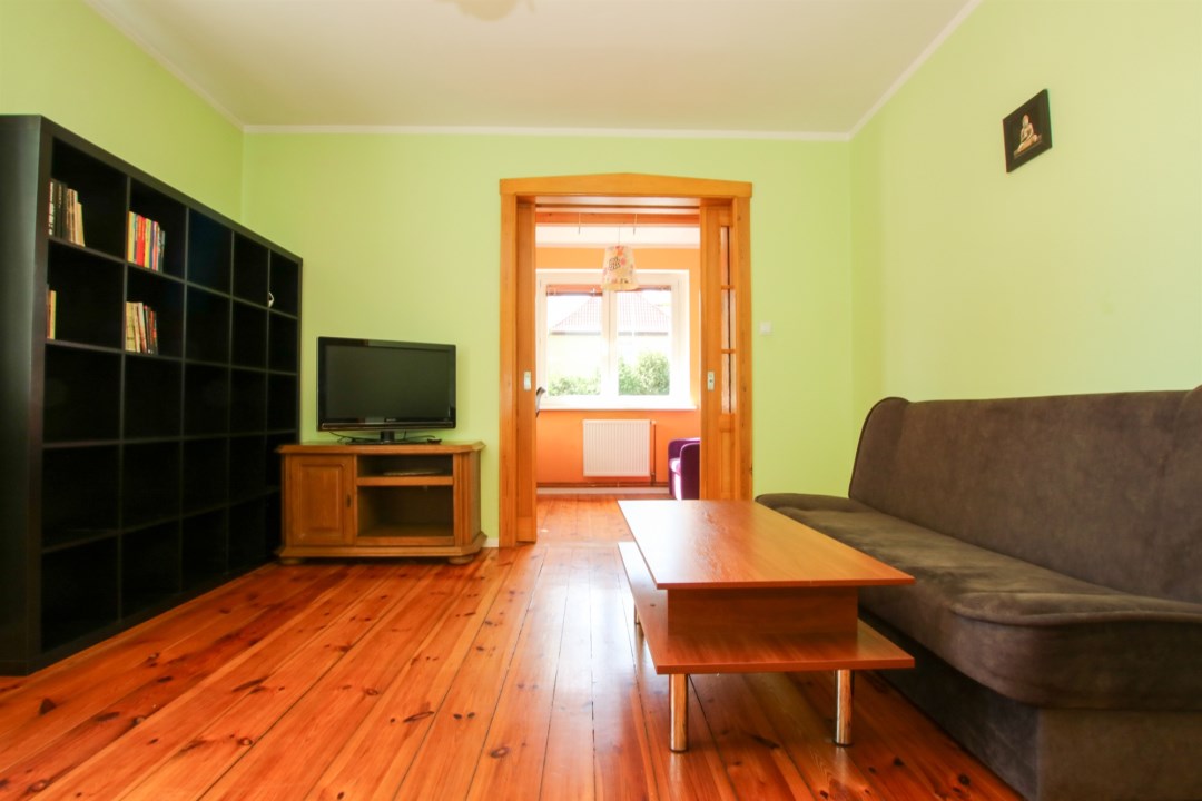 Wnętrza są jasne, funkcjonalne i zadbane – drewniane podłogi, duże okna i przyjemna kolorystyka ścian nadają całości przytulny, domowy klimat.