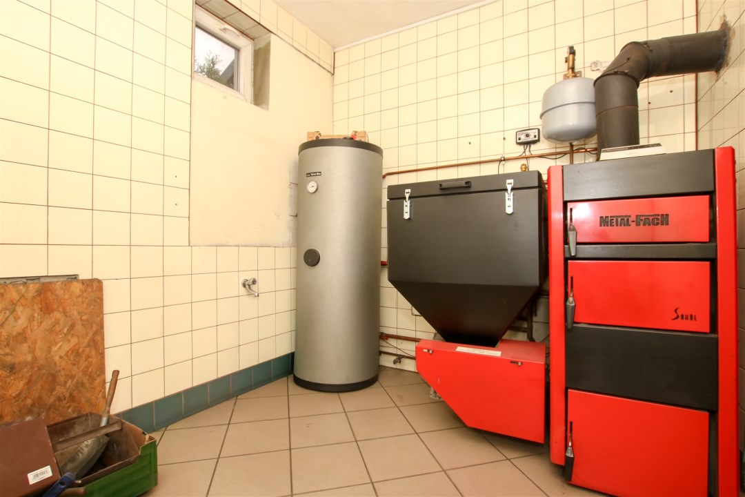 - Pomieszczenie gospodarcze - kotłownia (7,2 m²) – znajduje się tu piec na ekogroszek, narzędzia lub zapasy.