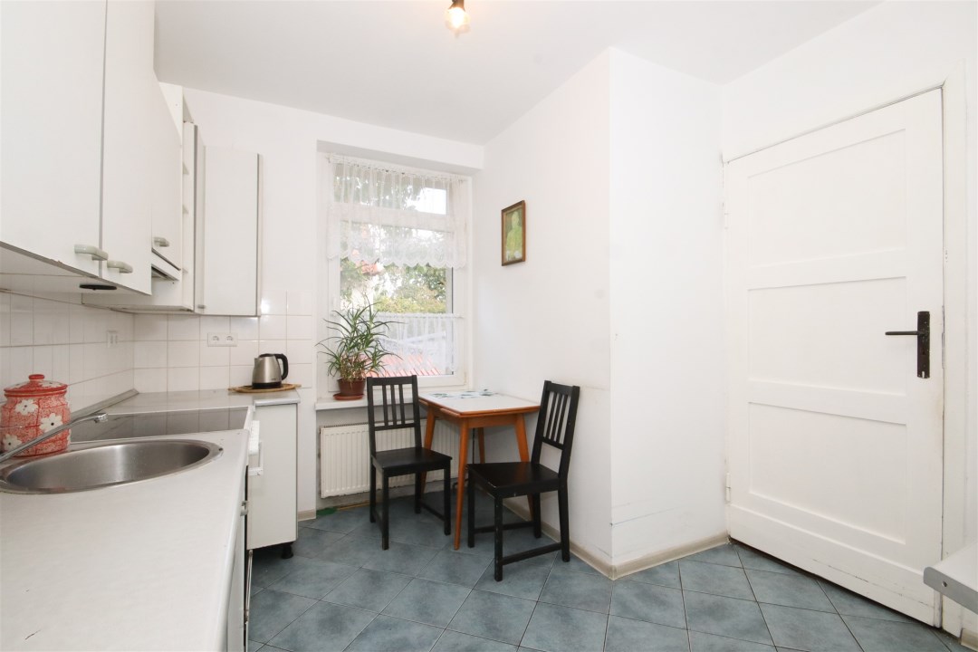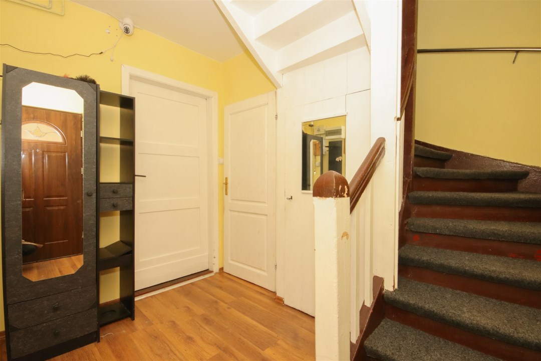 Pierwsze piętro to trzy ustawne pokoje, dwie łazienki oraz dodatkowa kuchnia, co daje szerokie możliwości aranżacyjne. Budynek posiada również strych, jako dodatkowe miejsce do przechowywania.