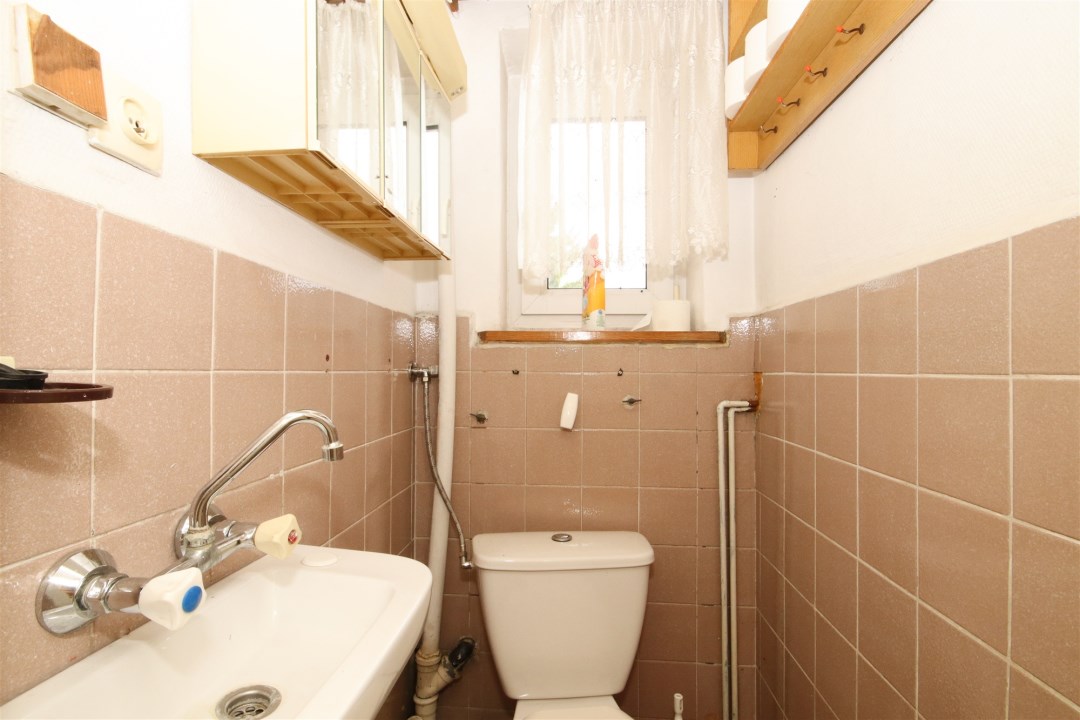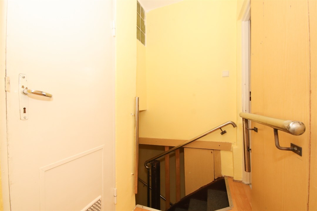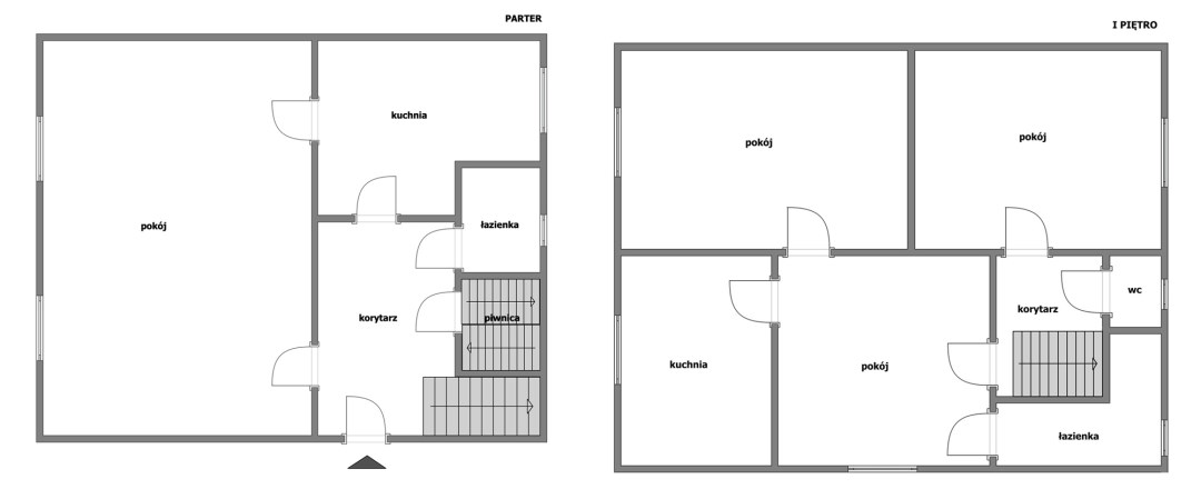Na parterze budynku znajduje się przestronny pokój dzienny, kuchnia, łazienka z prysznicem oraz korytarz, z którego prowadzi zejście do piwnicy.