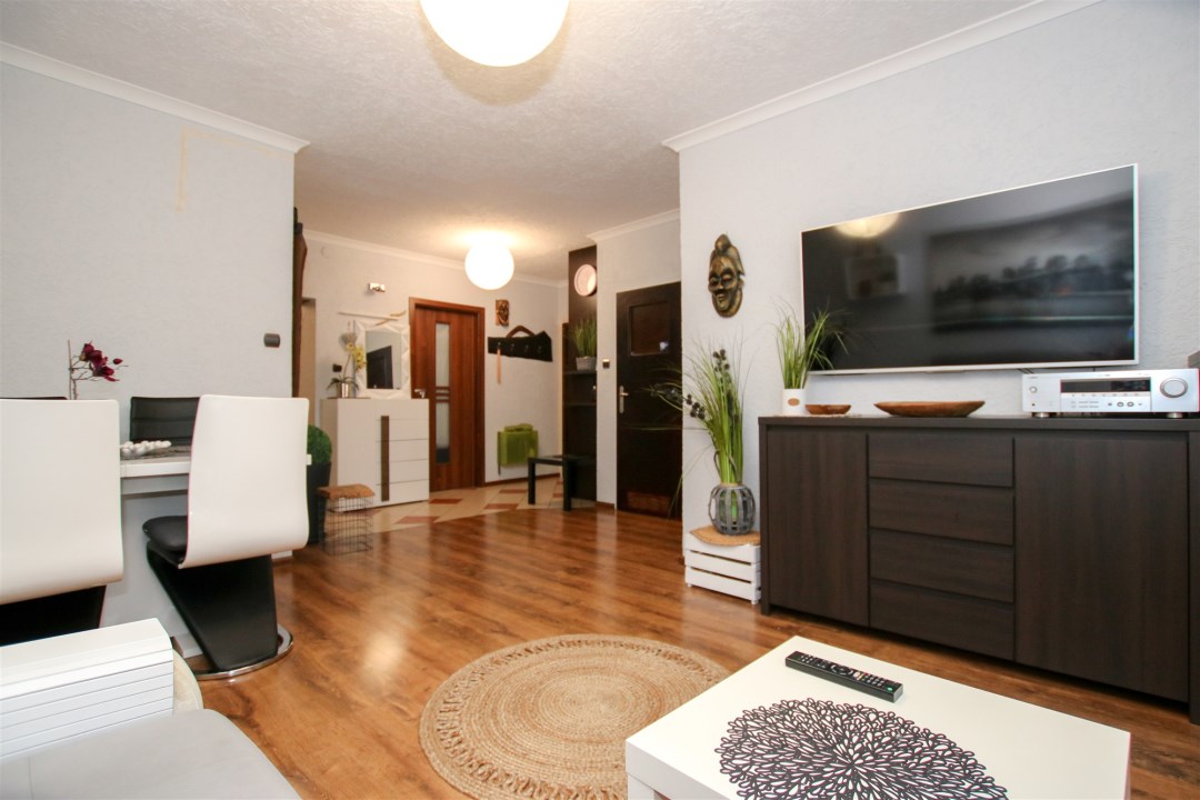 Mieszkanie oferuje doskonały, przemyślany układ pomieszczeń, co wpływa na jego funkcjonalność. Składa się z trzech przestronnych pokoi, które są w pełni rozkładowe, zapewniając wygodę i możliwość swobodnego urządzenia wnętrza. Każdy z pokoi jest jasny i ustawny, co umożliwia przyszłym właścicielom pełną dowolność aranżacyjną. Kuchnia jest oddzielnym, zamkniętym pomieszczeniem, które zostało wyposażone w zabudowę kuchenną oraz sprzęt AGD. Dzięki temu można komfortowo przygotowywać posiłki a także usiąść przy wysokim stoliku z hokerami. Łazienka po remoncie oraz toaleta są osobnymi pomieszczeniami, co zwiększa funkcjonalność mieszkania i sprawia, że jest ono wygodne w użytkowaniu. To szczególnie praktyczne rozwiązanie dla rodzin oraz osób ceniących sobie komfort i prywatność. W przedpokoju znajduje się duża, przesuwna szafa na odzież wierzchnią, dzięki czemu nie ma niepotrzebnego bałaganu w tym pomieszczeniu. Największy pokój pełni funkcję salonu oraz jadalni. Dzięki swoim wymiarom jest tu miejsce na strefę wypoczynkową na wygodnej kanapie przed telewizorem, a także spełnia funkcję jadalni dzięki dużemu stołowi z krzesłami. Idealna przestrzeń zarówno do codziennego odpoczynku, jak i do spotkań towarzyskich. Z salonu prowadzi wyjście na duży balkon od strony zachodniej, który jest dodatkowym atutem tego mieszkania. Balkon jest na tyle przestronny, że można wygospodarować na nim miejsce na stolik kawowy, krzesła lub niewielki ogródek balkonowy. To idealne miejsce do relaksu na świeżym powietrzu, przy filiżance kawy lub herbaty. Mieszkanie jest sprzedawane z wyposażeniem.