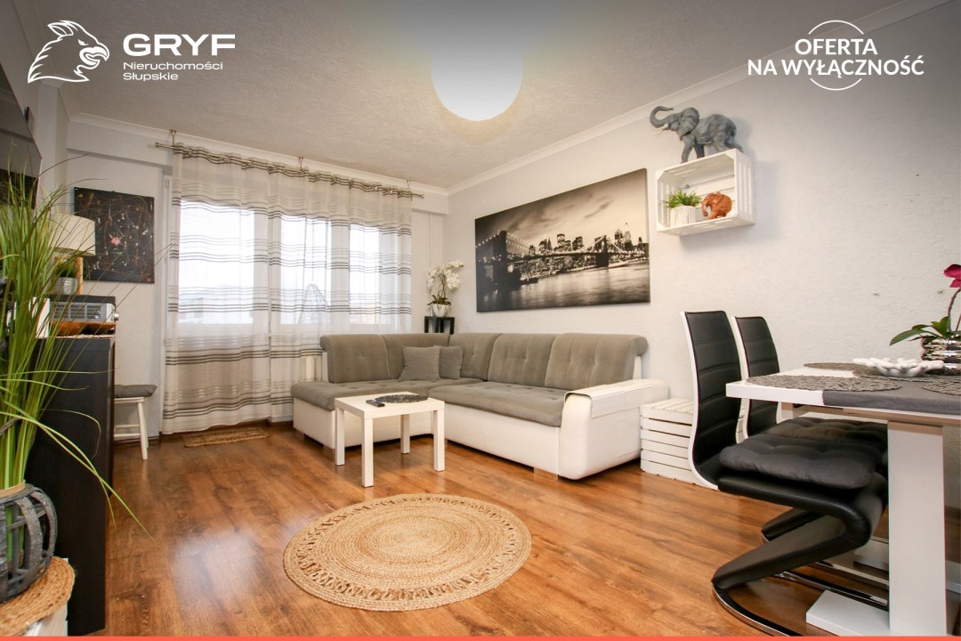 Przestronna i gotowa do zamieszkania nieruchomość 3-pokojowa o powierzchni 61,80 m2 z balkonem na Osiedlu Niepodległości przy ulicy Małcużyńskiego w Słupsku.