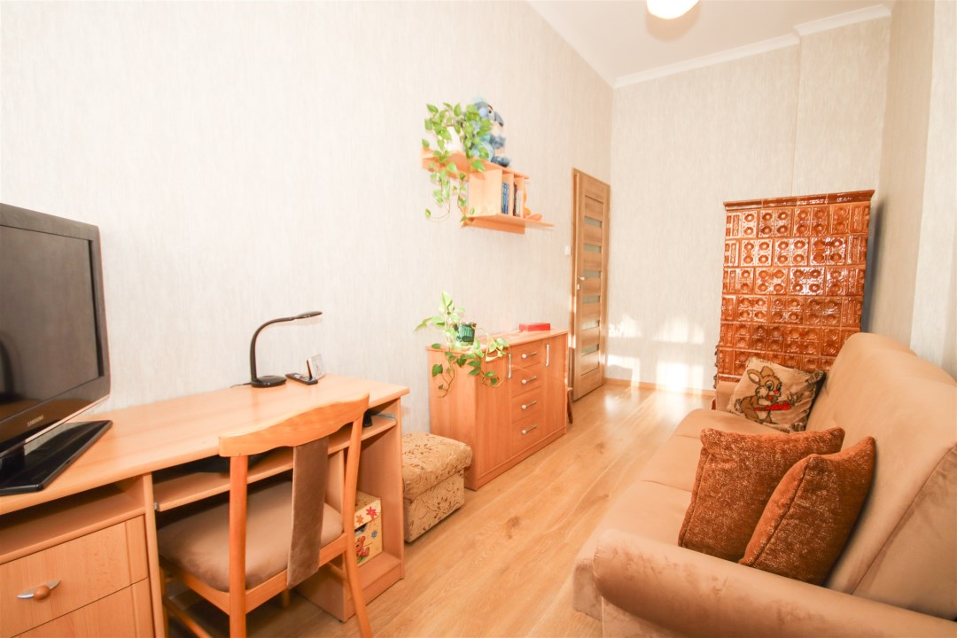 W mieszkaniu znajduje się piec kaflowy w bardzo dobrym stanie technicznym i wizualnym – 2 lata temu został przebudowany i postawiony na nowo.