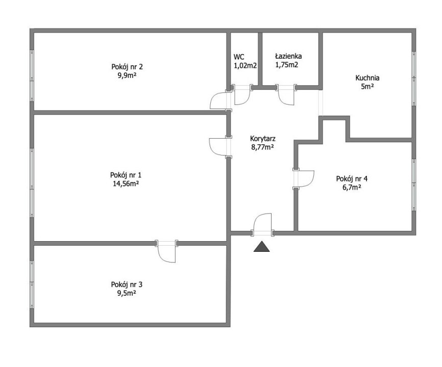 Rozkład zapewnia pełną funkcjonalność – każdy pokój stanowi oddzielną przestrzeń, co daje wiele możliwości aranżacyjnych.
