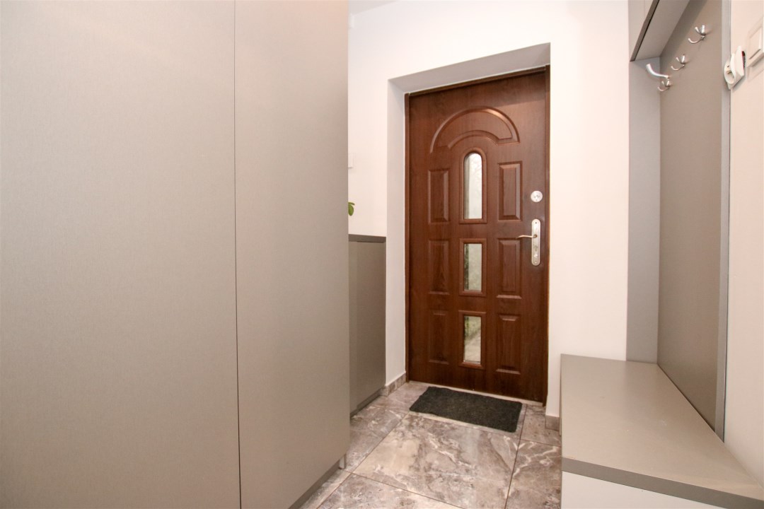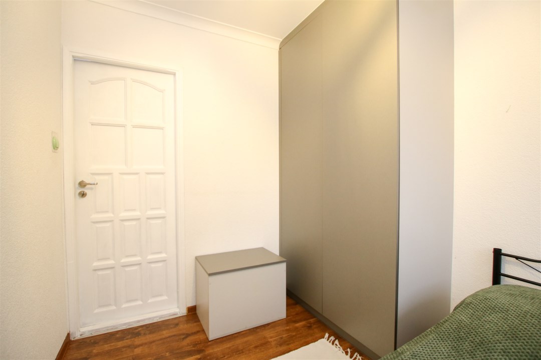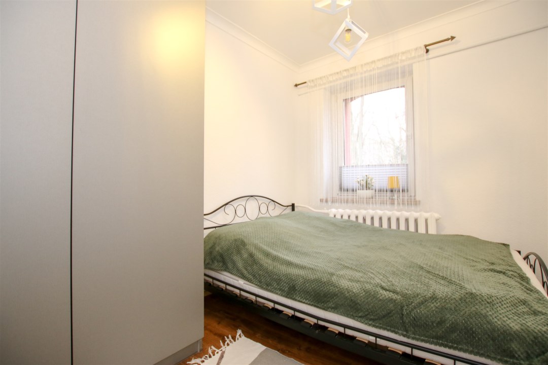 W części prywatnej znajdują się dwa dodatkowe pokoje. Pierwszy z nich to komfortowa sypialnia z dużym, wygodnym łóżkiem, tworząca idealną przestrzeń do odpoczynku po intensywnym dniu. Drugi pokój może pełnić funkcję pokoju gościnnego – został wyposażony w praktyczną szafę oraz łóżko, dzięki czemu zapewnia komfort odwiedzającym, a jednocześnie może służyć jako dodatkowa przestrzeń do pracy lub przechowywania.