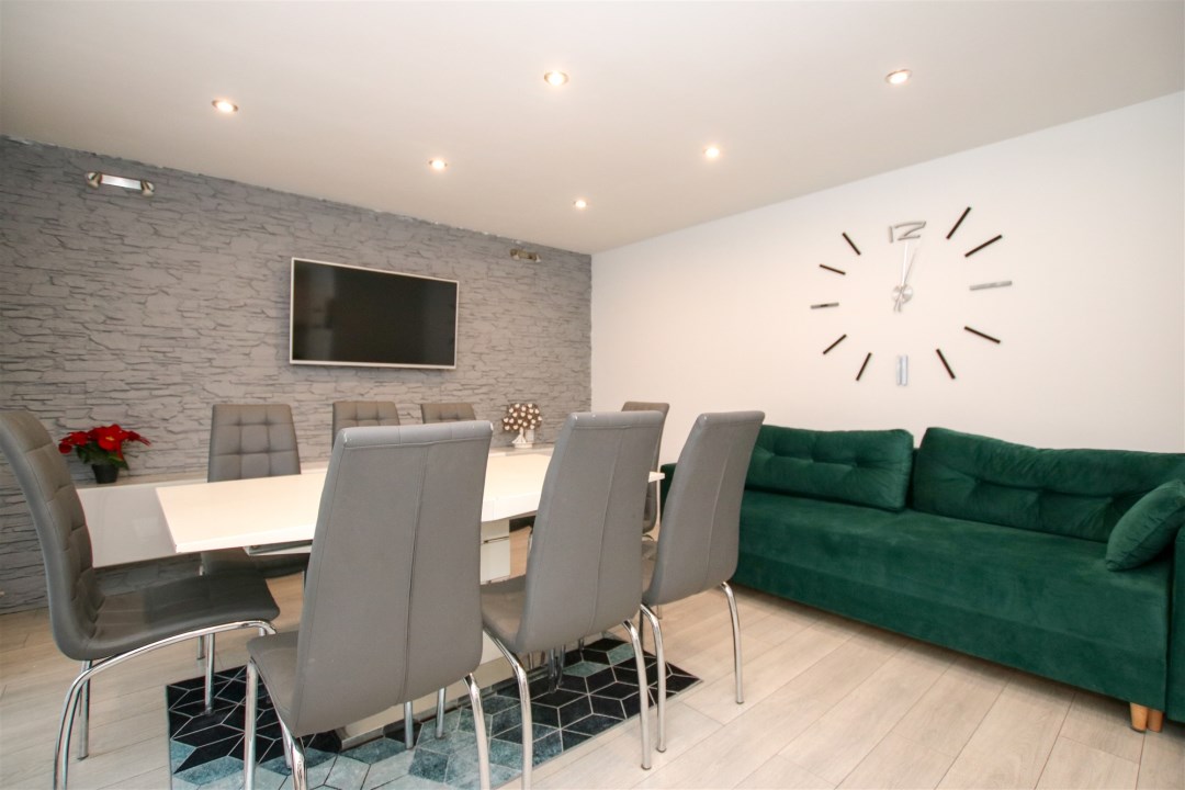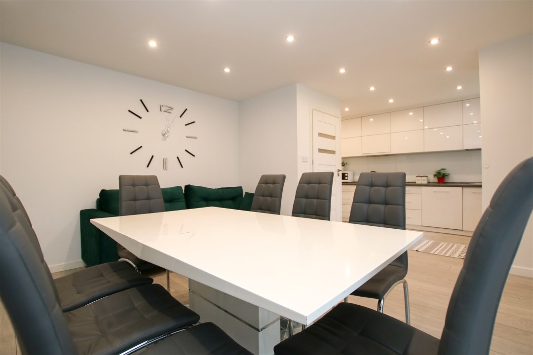 Przestronne 3-pokojowe mieszkanie, w którym nowoczesny styl spotyka się z przytulną atmosferą. Sercem lokalu jest jasny pokój dzienny – idealne miejsce do wspólnego spędzania czasu. Centralnym punktem tej przestrzeni jest duży, elegancki stół z wygodnymi krzesłami, który doskonale sprawdzi się zarówno podczas codziennych posiłków, jak i spotkań z przyjaciółmi.