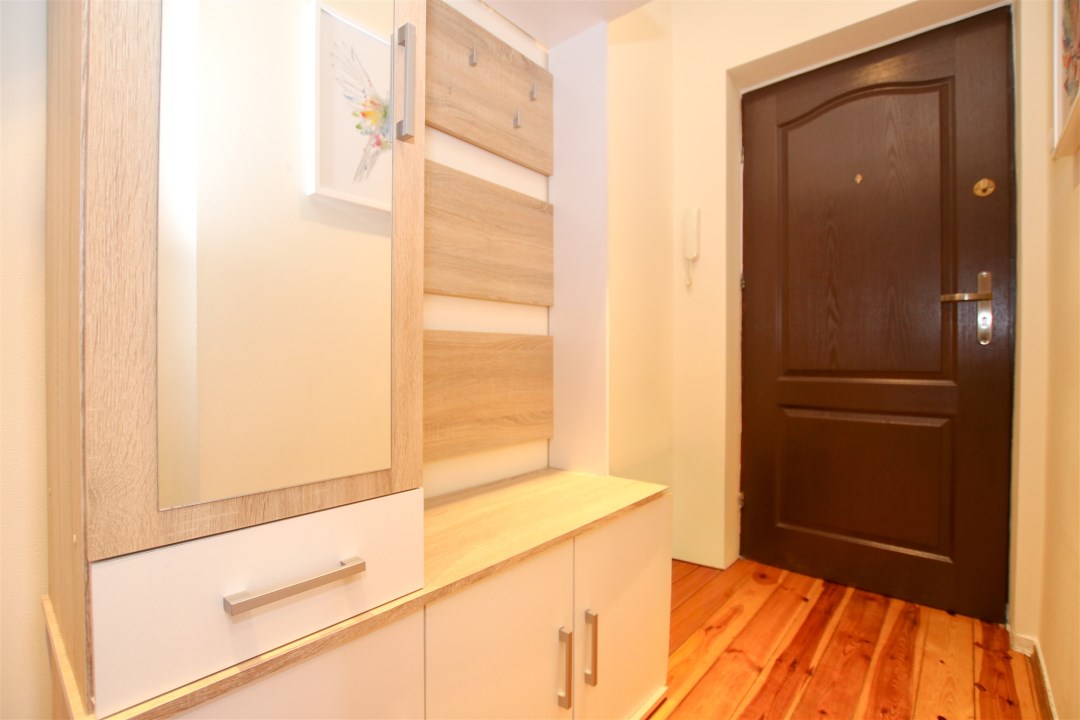 Mieszkanie jest dwustronne, słoneczne i dobrze rozplanowane – każdy metr został wykorzystany w przemyślany sposób. Już od wejścia czuć tu porządek i komfort. Wnętrze jest po odświeżeniu, utrzymane w jasnych barwach, dzięki czemu stanowi idealną bazę zarówno dla minimalistów, jak i osób lubiących bardziej wyrazisty styl.
