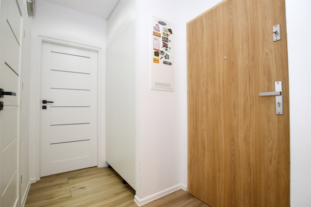 Lokal o powierzchni 38,06 m² znajduje się na czwartym piętrze nowoczesnego, pięciokondygnacyjnego budynku z windą. Do mieszkania przynależy prywatne, wyznaczone miejsce parkingowe.
