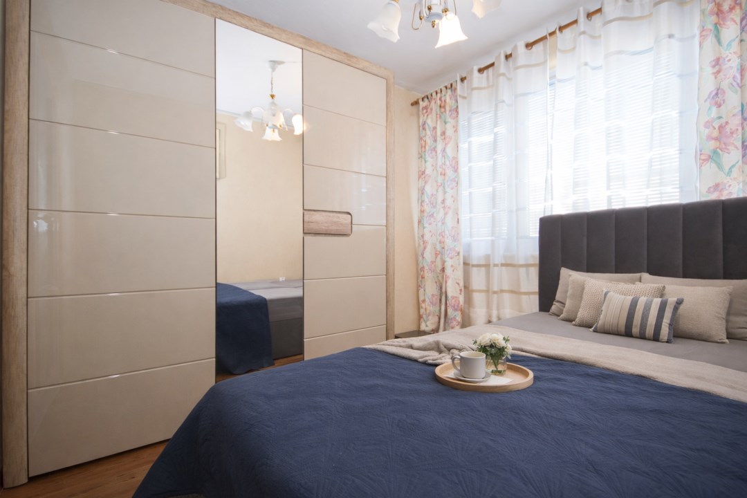 Mieszkanie jest dwustronne, co zapewnia dobre doświetlenie i komfort użytkowania.