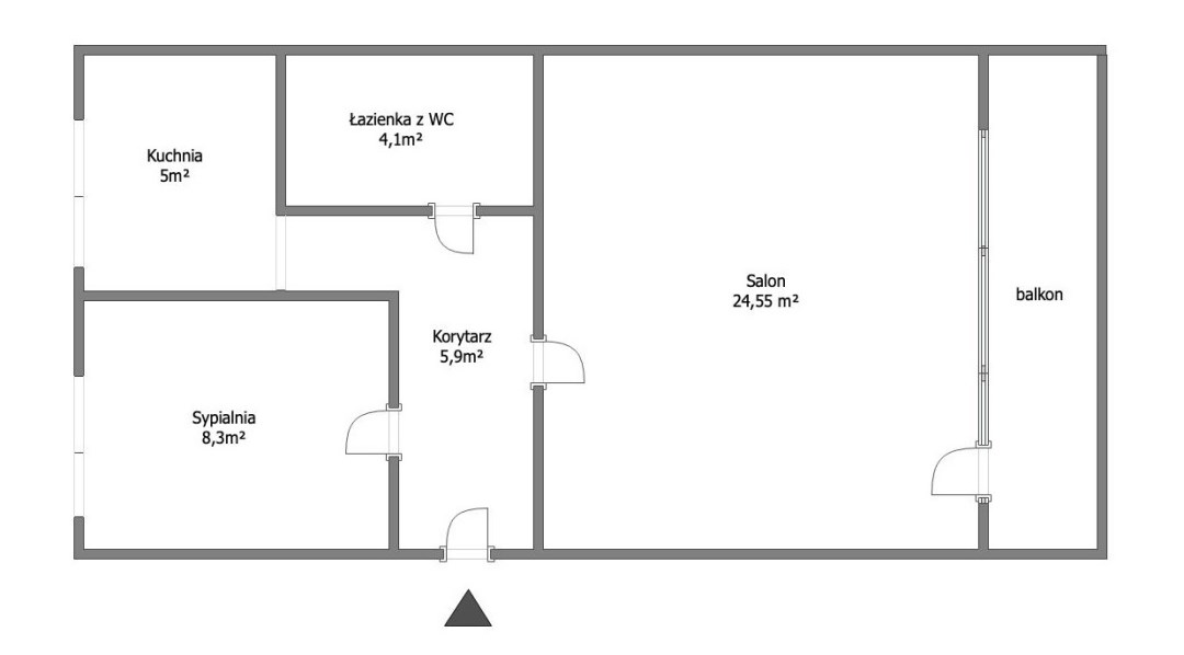 Układ mieszkania daje wiele możliwości aranżacyjnych – zarówno w klasycznym układzie dwóch pokoi z oddzielną kuchnią, jak i w nowoczesnej wersji z częściowo otwartą strefą dzienną.