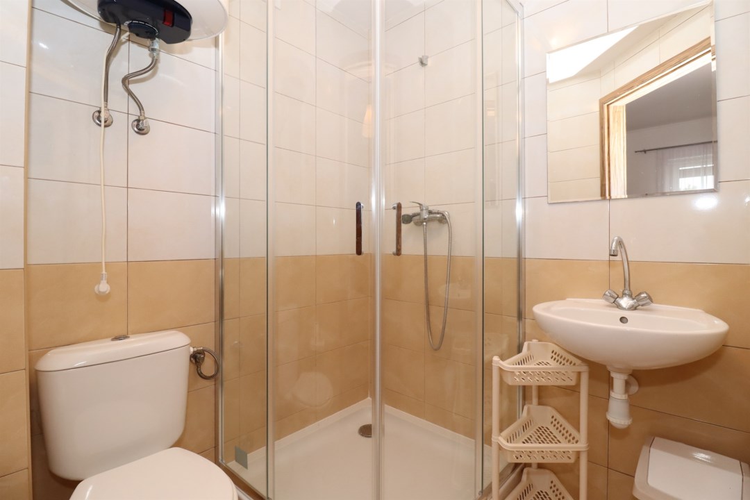 Łazienka utrzymana jest w jasnych, ciepłych tonacjach i oferuje komfortowy prysznic z przeszkloną kabiną.