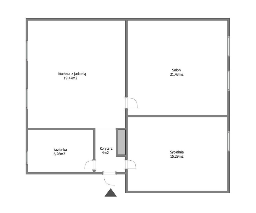 Mieszkanie o powierzchni użytkowej 66,45 m² składa się z: