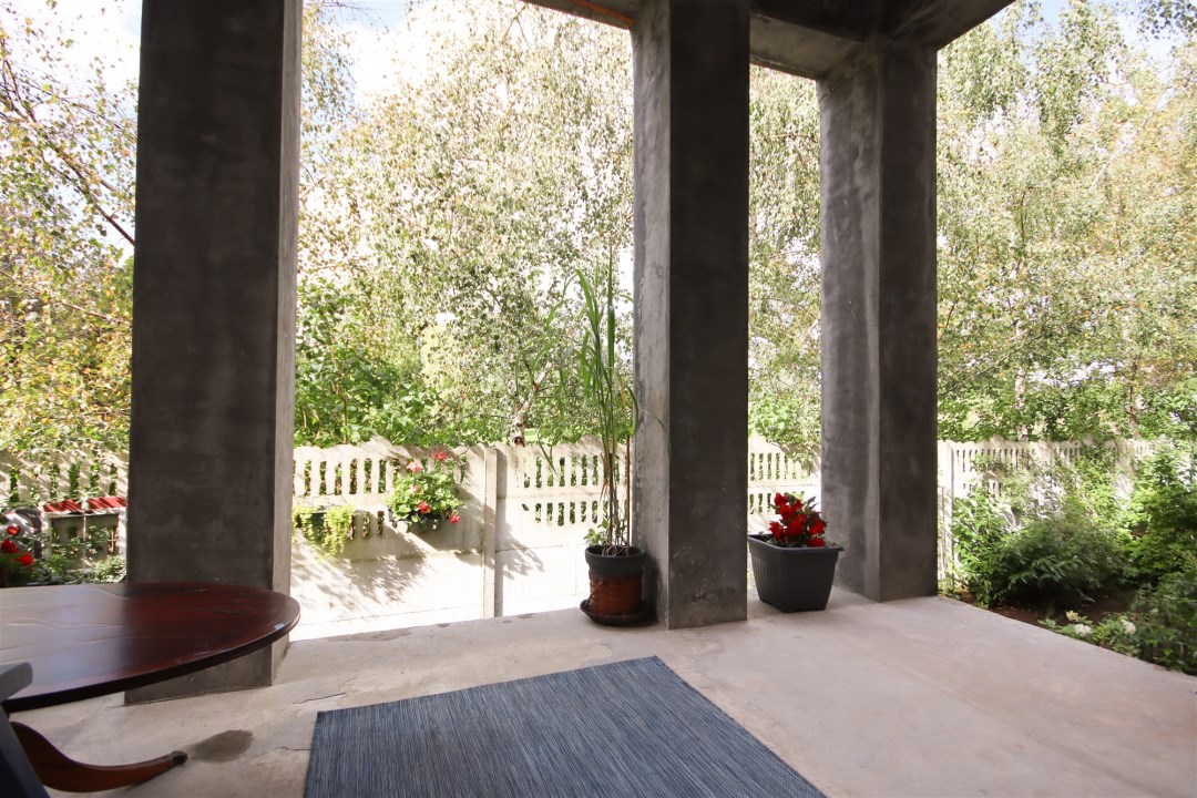 - zadaszony taras z widokiem na zieleń - z którego prowadzą schodu do ogrodu,
